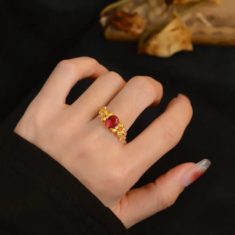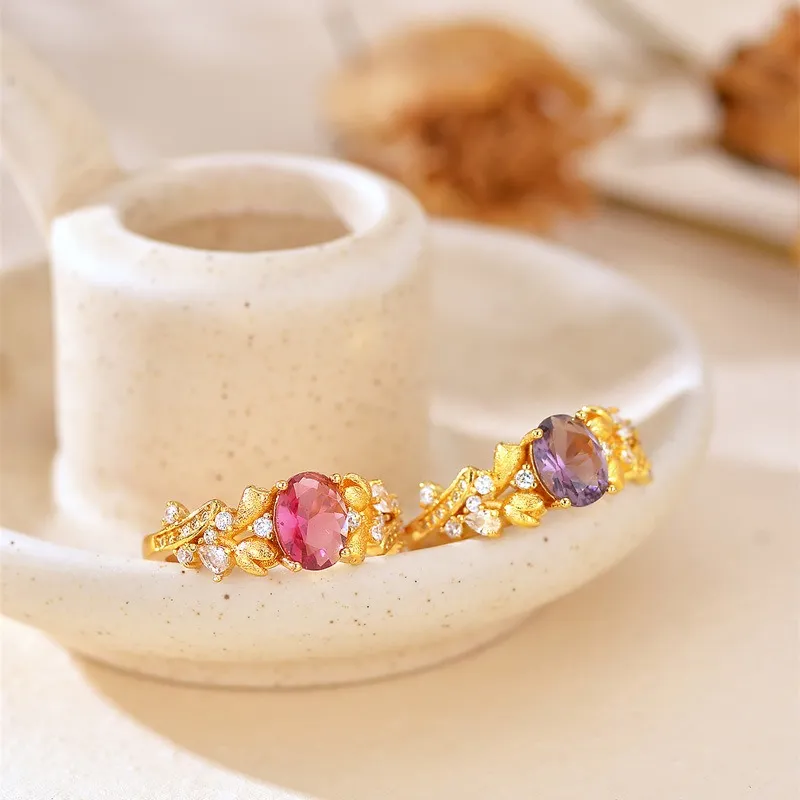 Gold Plated Vintage-Style Oval Cubic Zirconia Ring